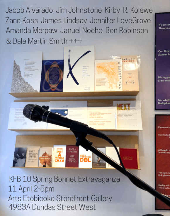 Dale Martin Smith is a poet, editor, literary scholar, and professor at Toronto Metropolitan University. He is the author of the poetry collections The Size of Paradise, Flying Red Horse, Slow Poetry in America, Black Stone, American Rambler, as well as the Knife Fork Book chapbooks, Sons, and Blur. Born in Dallas, he earned a BA and PhD in English from the University of Texas, and an MA in Poetics from New College of California. Smith’s scholarly contributions include Poets Beyond the Barricade: Rhetoric, Citizenship, and Dissent after 1960 and two edited editions, An Open Map: The Correspondence of Robert Duncan and Charles Olson and Imagining Persons: Robert Duncan’s Lectures on Charles Olson. His essays and poetry have appeared in Poetry, The Walrus, LA Review of Books, Boston Review, and Lambda Literary. With Hoa Nguyen, he edited Skanky Possum, a literary zine and book imprint, from 1998 to 2004. His essay collection, That Tongue Be Time: Norma Cole and a Continuous Making, is forthcoming from University of New Mexico Press.