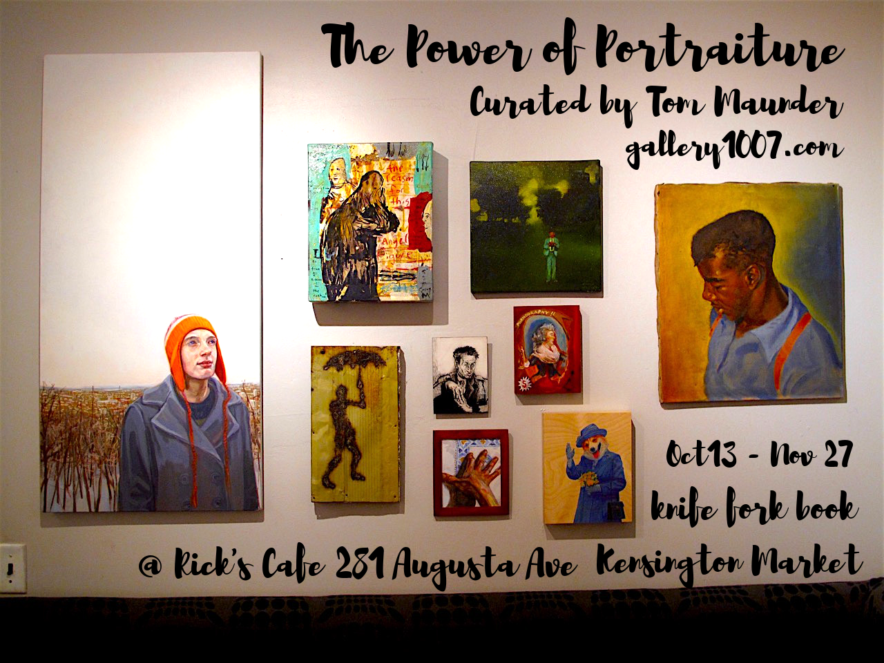 Categories art canadian events Opening Post author By Kirby Post date October 13, 2016 1 Comment on Opening OPENING RECEPTION THIS EVENING 6:30-9PM with curator THOMAS MAUNDER of GALLERY 1007 in attendance. knife | fork | book @ Rick’s Cafe | 281 Augusta Avenue | Kensington Market Doors open at 6:30PM Share this: Click to share on X (Opens in new window) X Click to share on Facebook (Opens in new window) Facebook Click to share on Tumblr (Opens in new window) Tumblr Click to share on Pinterest (Opens in new window) Pinterest Click to print (Opens in new window) Print Click to email a link to a friend (Opens in new window) Email Like Loading... Tags 281AugustaAve, artists, canadian, gallery1007, new, october, opening, portraiture, RicksCafe, thepowerofportraiture, thomasmaunder, thursdays, tonight By Kirby Poet. Book Fairy. Publisher knife | fork | book View Archive → ← Changed → Days like these One reply on “Opening” […] worthy of note: The current Gallery 1007 show at that lovely poetry shop, knife | fork | book at Rick’s Cafe (281 Augusta Ave, Kensington Market), has been extended and will be refreshed […] LikeLike Leave a comment Cancel reply Δ This site uses Akismet to reduce spam. Learn how your comment data is processed.