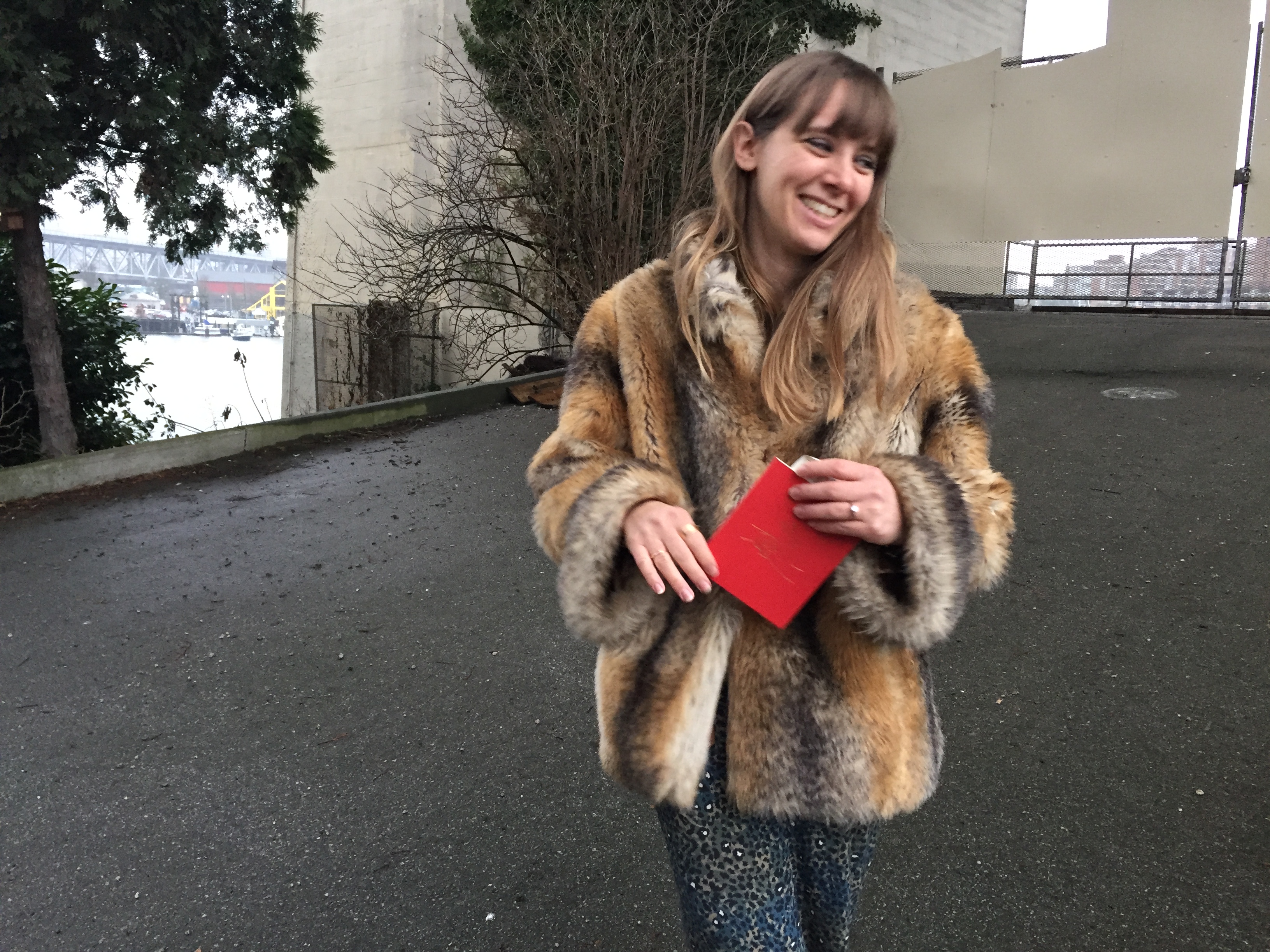 PICTURED: Poet ELIANNA LEV reads from SEX MADE ME (knife | fork | book, 2017) Sunset Beach, Vancouver, yesterday afternoon.