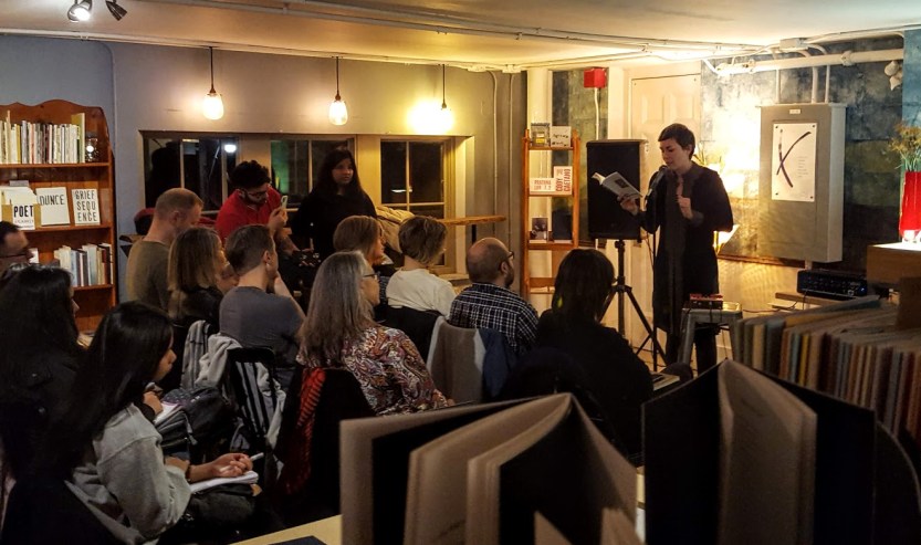 Categories events fall InStoreSaturdays KFB POETRY LAB KFBFridays launch poet poetry reading splendid thankyou very 60 x 60 Post author By Kirby Post date November 20, 2019 2 Comments on 60 x 60 Sixty poets. Our first sixty days (and counting). k f b MEZZANINE Share this: Click to share on X (Opens in new window) X Click to share on Facebook (Opens in new window) Facebook Click to share on Tumblr (Opens in new window) Tumblr Click to share on Pinterest (Opens in new window) Pinterest Click to print (Opens in new window) Print Click to email a link to a friend (Opens in new window) Email Like Loading... Tags 60x60, artscapeyoungplace, destination, firstsixty, KFBmezzanine, poetry, poets By Kirby Poet. Book Fairy. Publisher knife | fork | book View Archive → ← there is no minor violence just as there is no negligible cough during an aria → “May you be free of suffering.” 2 replies on “60 x 60” You create such beautiful, welcoming spaces, Kirby. Thanks! On Wed, Nov 20, 2019 at 10:37 AM knife | fork | book wrote: > Kirby posted: ” Sixty poets. Our first sixty days (and counting). k f b > MEZZANINE ” > LikeLike […] DA-MN. We made the most of those seven months creating/holding a glorious space for poets/poetry—Sixty Poets in [our first] Sixty Days, our first ever installation work by Poet/Artist Jessica Hiemstra‘s The Sky Is Falling […] LikeLike Leave a comment Cancel reply Δ This site uses Akismet to reduce spam. Learn how your comment data is processed.