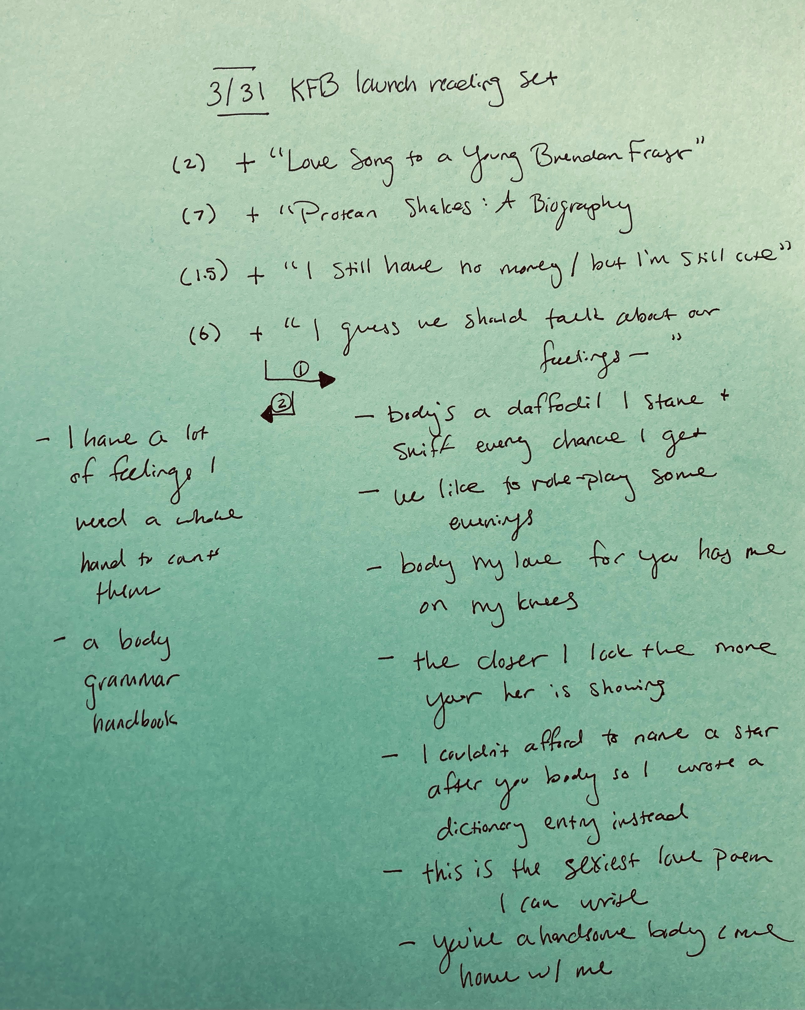 Set list from last night’s brilliant launch/reading of TRAVIS SHARP’s YES, I AM A CORPSE FLOWER with Special Guest SARAH DOWLING.