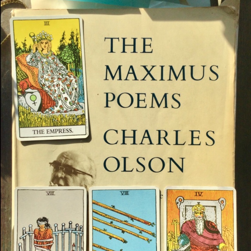 PS: What do you think of the spread I drew about this workshop, shown above on my copy of The Maximus Poems? They appeared in this order: Eight of Swords, Eight of Wands, The Emperor, The Empress.