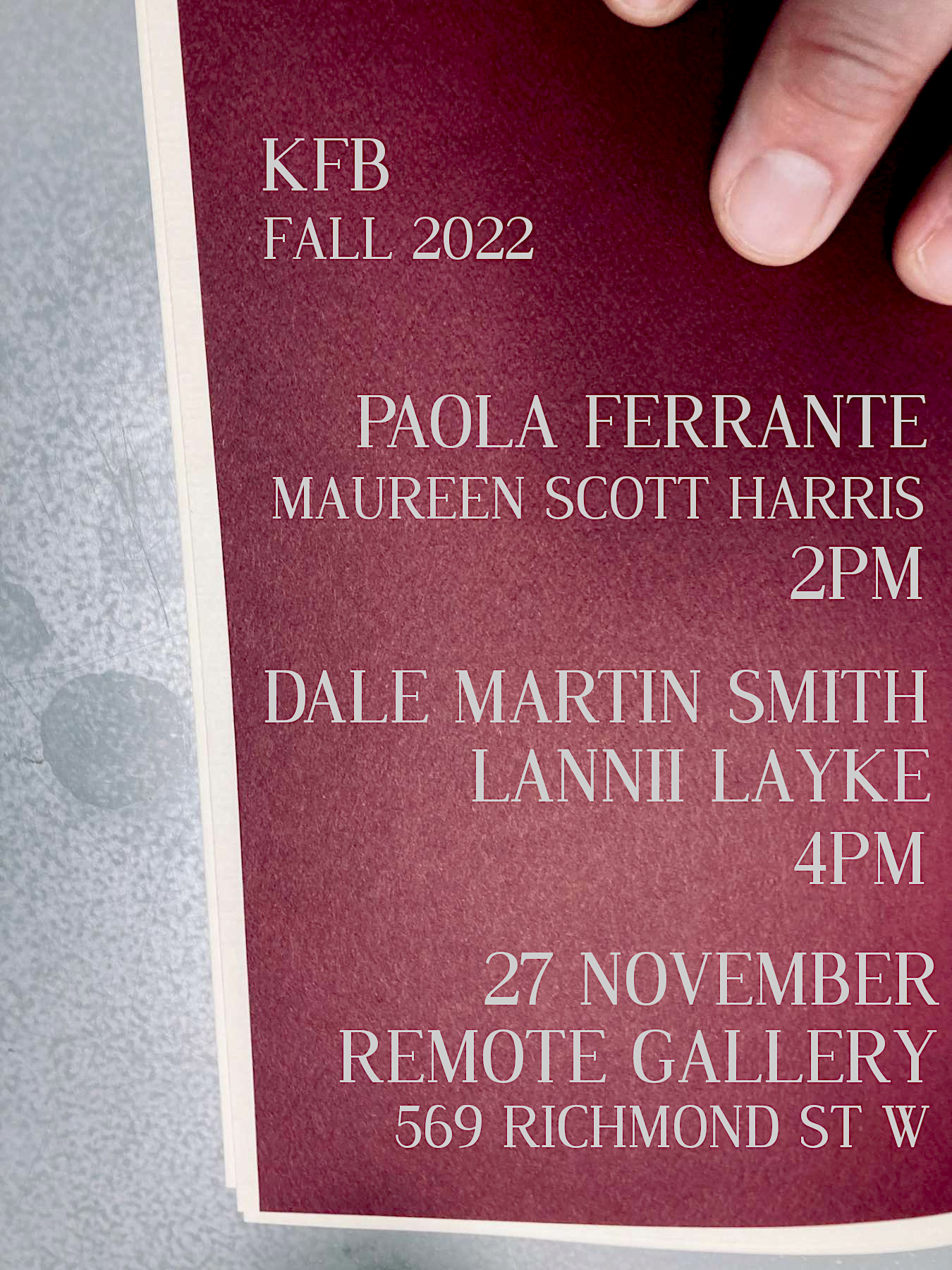 KFB FALL 2022 LAUNCH 27 November at REMOTE GALLERY 568 Richmond St W
