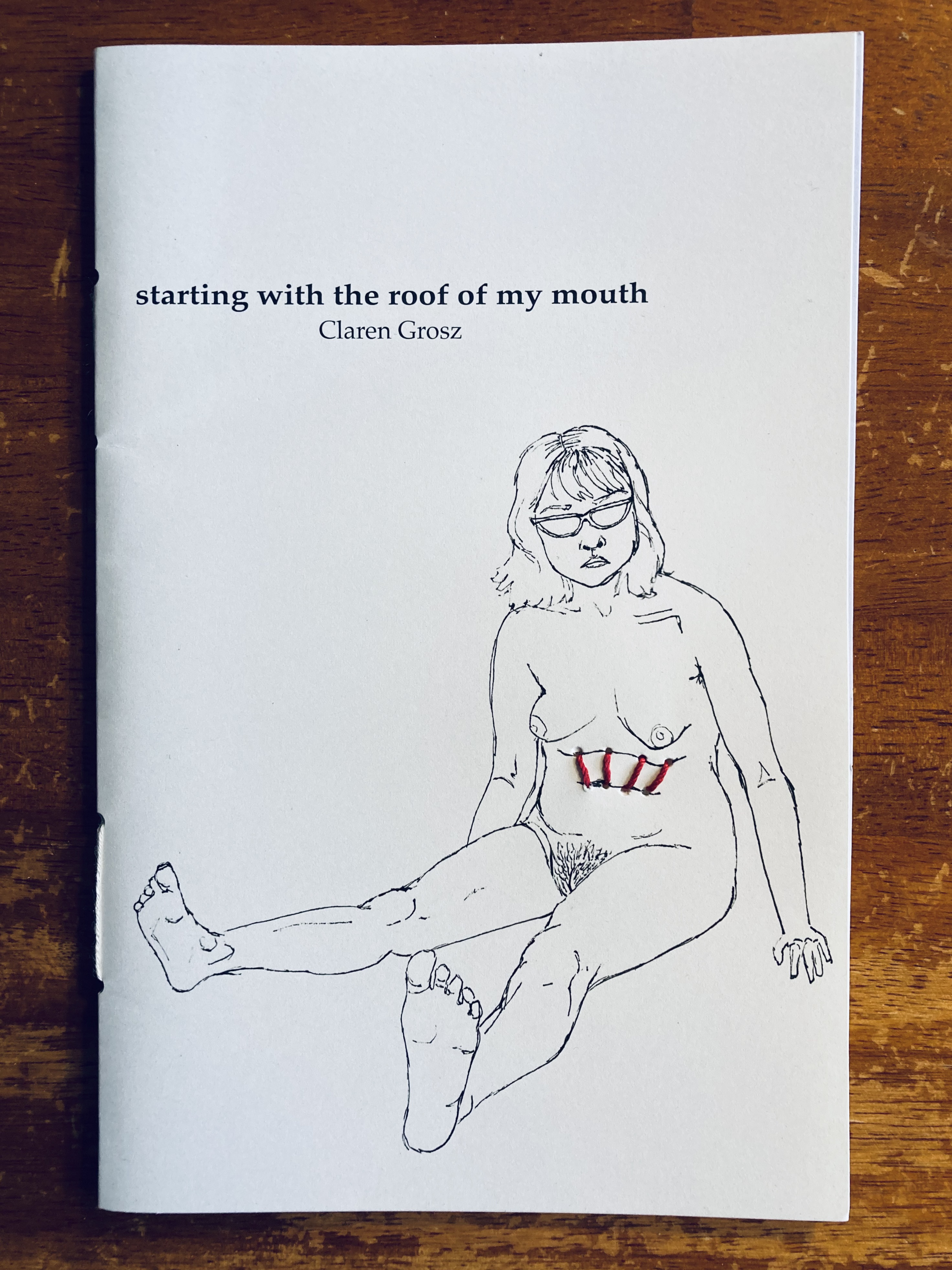 Claren Grosz’s perfectly executed starting with the roof of my mouth [Gap Riot Press, 2022] featured at this year’s inaugural Fertile Festival of New & Inventive Works beside Klara du Plessis & Kadie Salmon’s soaring Skin & Meat Sky and Travis Sharp’s searing Behind the Poet Reading Their Poem Is a Sign Saying Applause [both KFB].