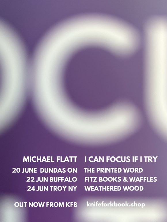 MICHAEL FLATT reads from his new KFB collection I CAN FOCUS IF I TRY supported by poet, R/B MERTZ reading from their upcoming CU T (Threadsuns, 2024) to a welcoming house at The Printed Word Bookshop, Dundas ON last night. Thanks James, and all who came out to celebrate.