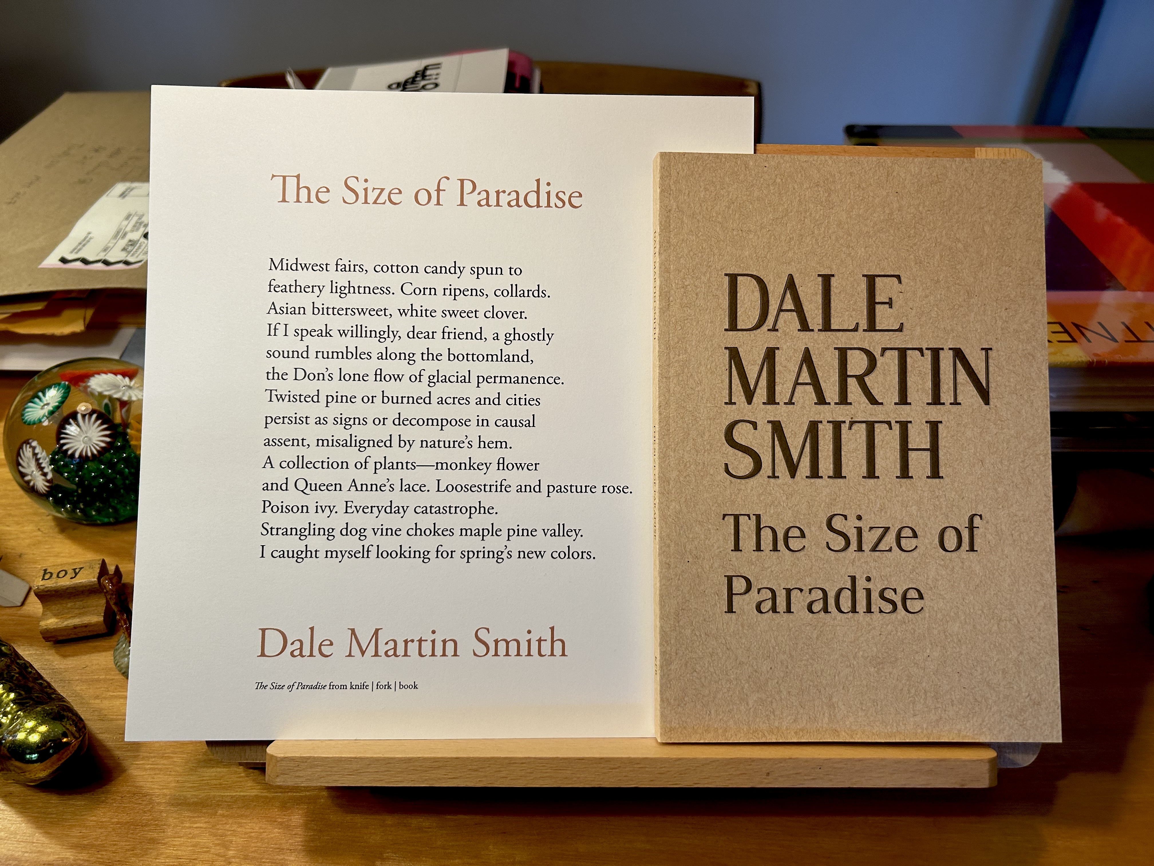 And now, The Size of Paradise (2024, distributed by Asterism Books), this poet’s decade-long undertaking, this beauty of a book-in-hand, designed by R. Kolewe, printed by John de Jesus at Coach House, whom I have had the distinct pleasure to work with over the years. Fineries, my loves. Thank you.