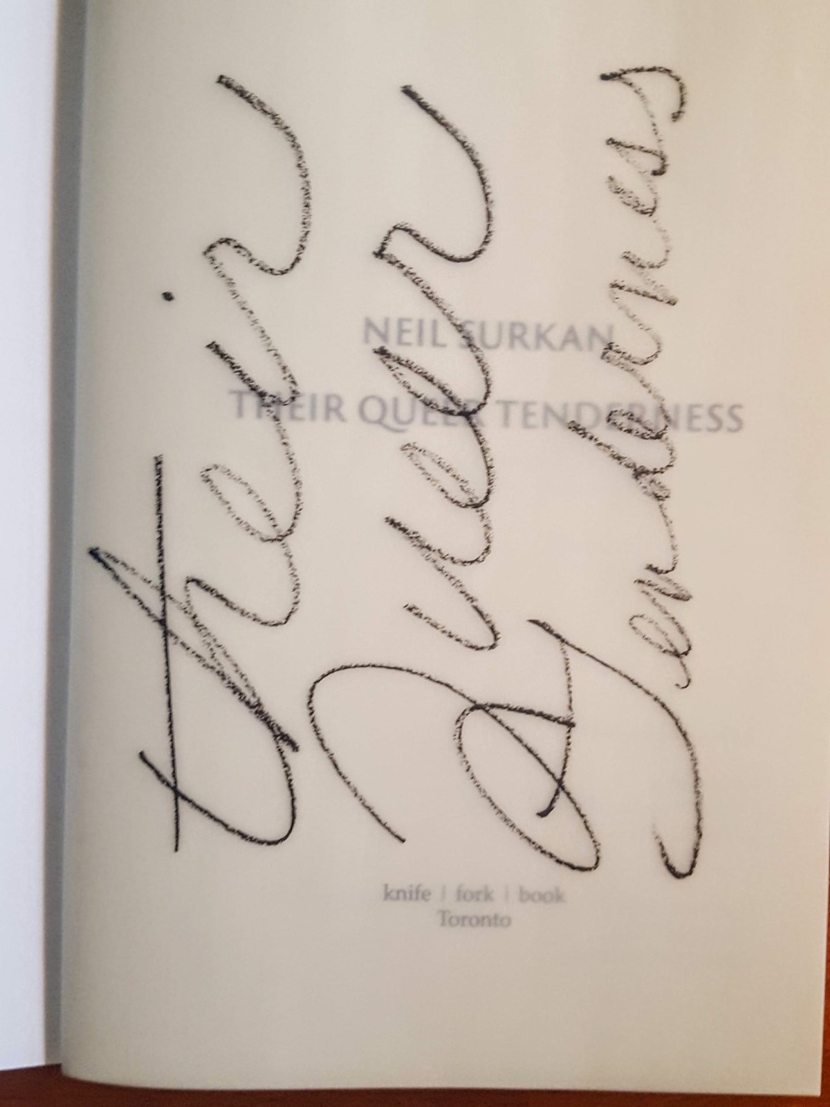 If we can’t turn this tanker in the canal / and it’s locks from here to the rising sea, / who wants to blow me as the world drowns? NEIL SURKAN “Scratched in a Stall on the Seasong” from THEIR QUEER TENDERNESS