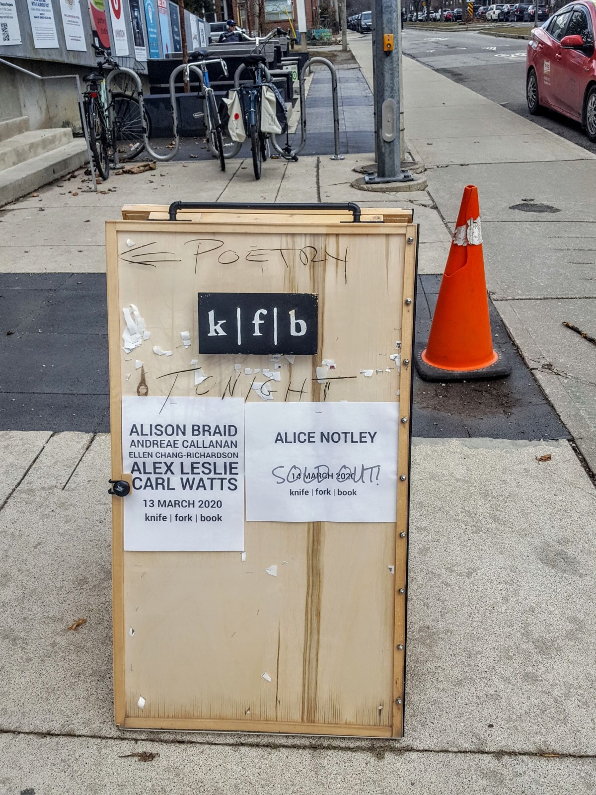 “Good evening and welcome to KFB.” The KFB Warm-Up Welcome. Stephen Collis & Bardia Sinaee meeting for the first time earlier tonight at knife | fork | book.