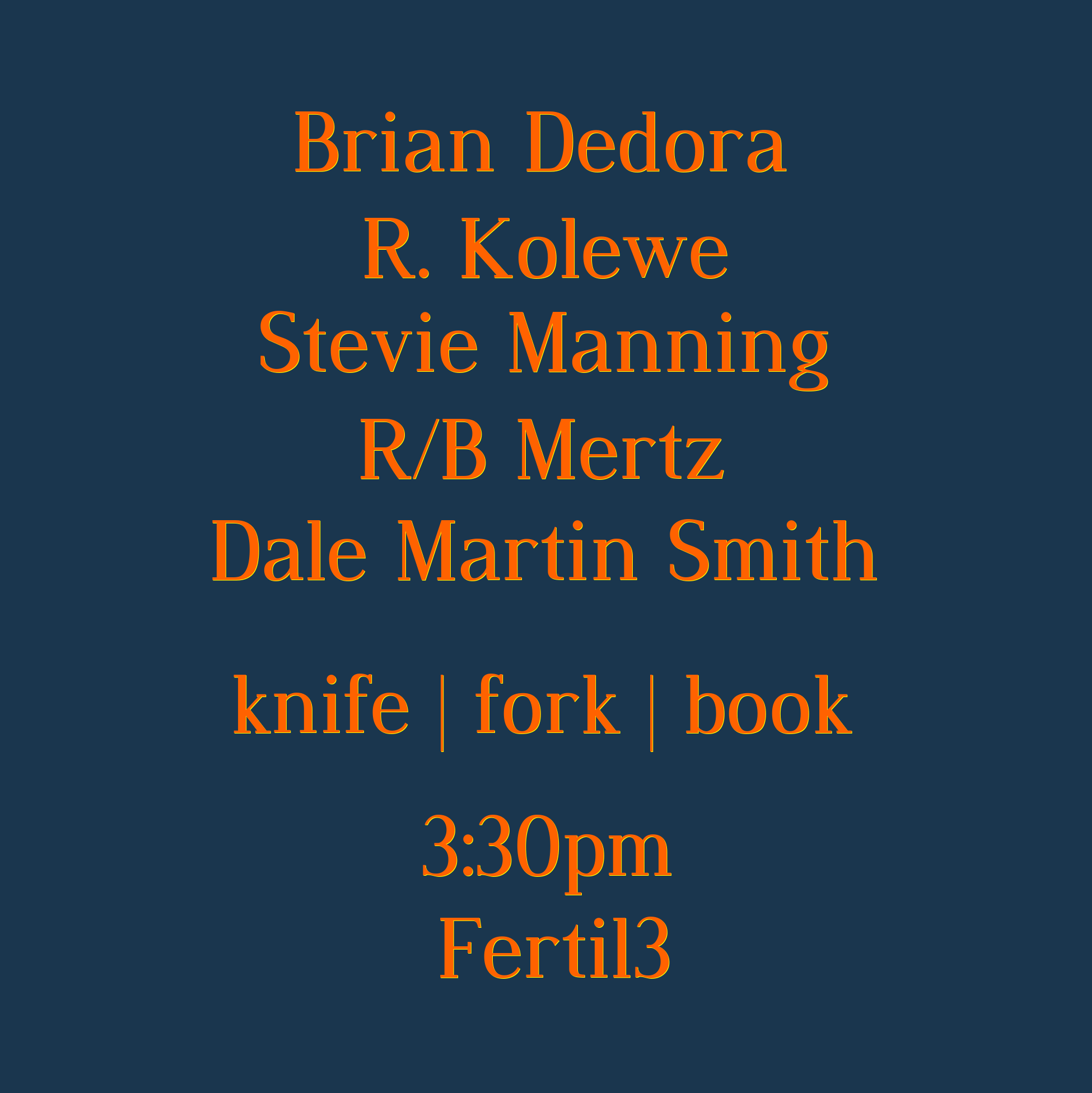 Poetry Readings KESS MOHAMMADI, KATE CAYLEY, ZANE KOSS, CASSIDY McFADZEAN, STEVIE MANNING, BRIAN DEDORA, R/B MERTZ, JAMES LINDSAY, R. KOLEWE, DALE MARTIN SMITH, MARK TRUSCOTT, EUGENIA ZUROSKI +++