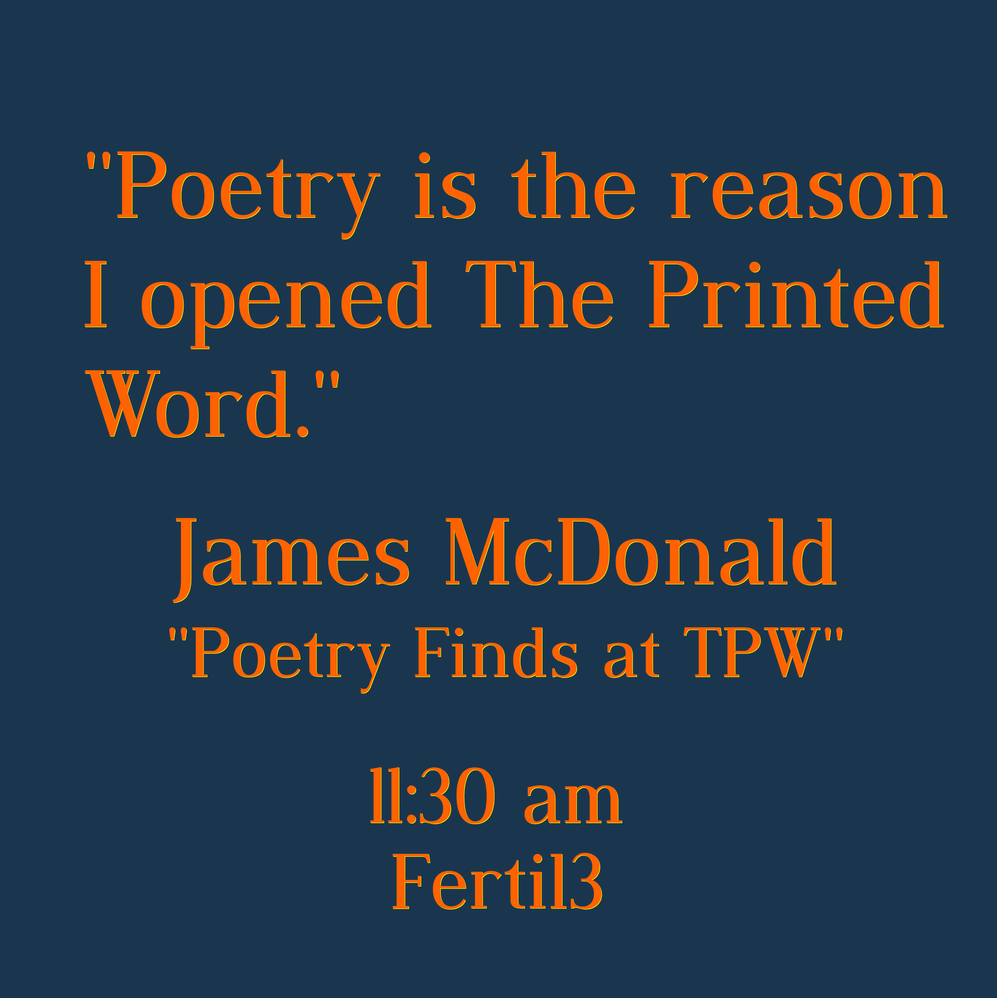 Fertil3 is fortunate enough to be held this year at “the go-to place for poetry,” The Printed Word Bookshop 16 McMurray Street in beautiful Dundas ON owned and operated by one of the most knowledgeable booksellers I know, JAMES McDONALD