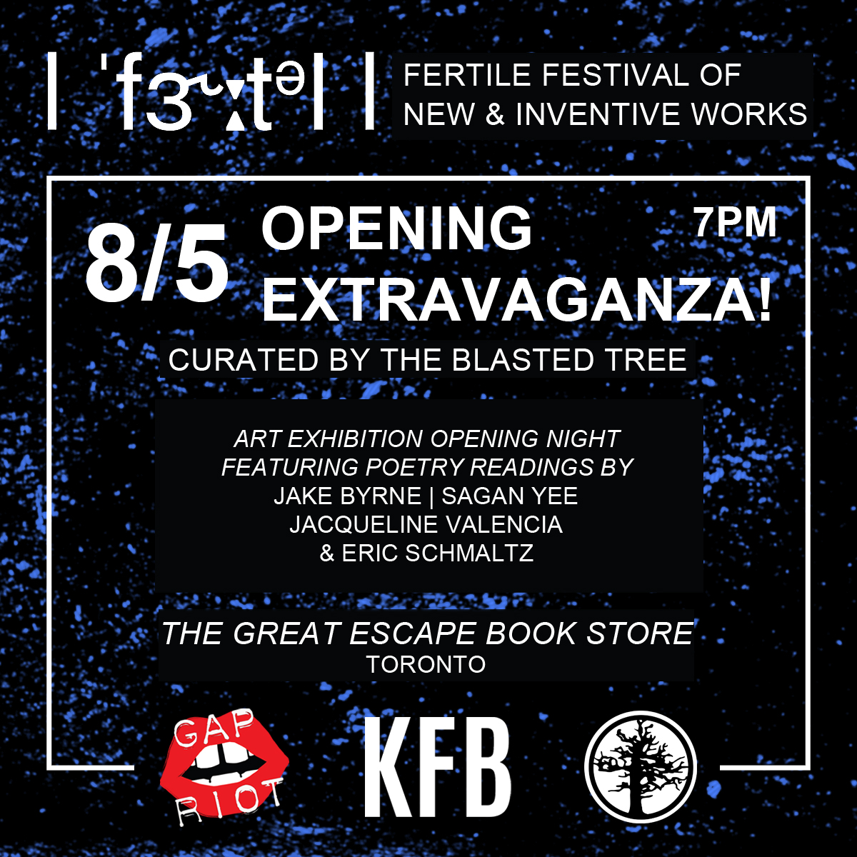 05 AUG 7PM FERTILE | BLASTED TREE OPENING EXTRAVAGANZA! Sagan Yee, Jake Byrne, Jacqueline Valencia & Eric Schmaltz