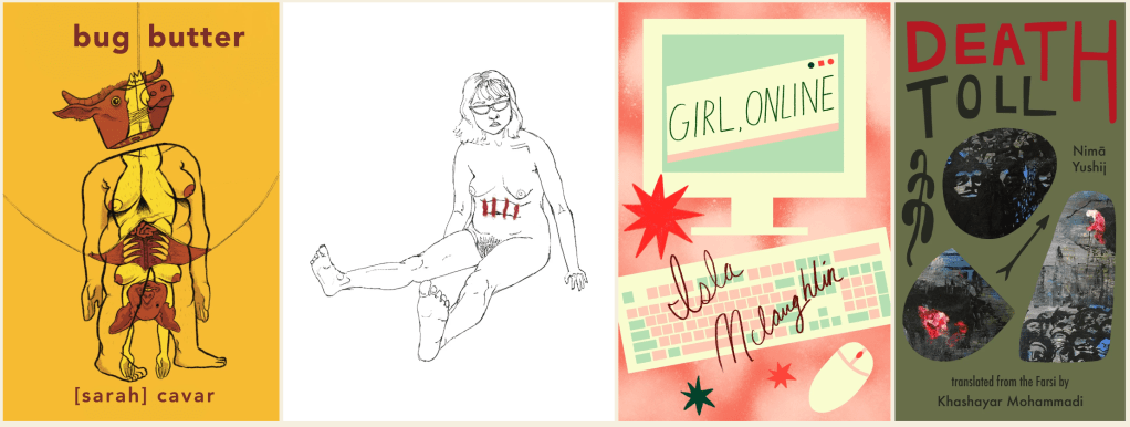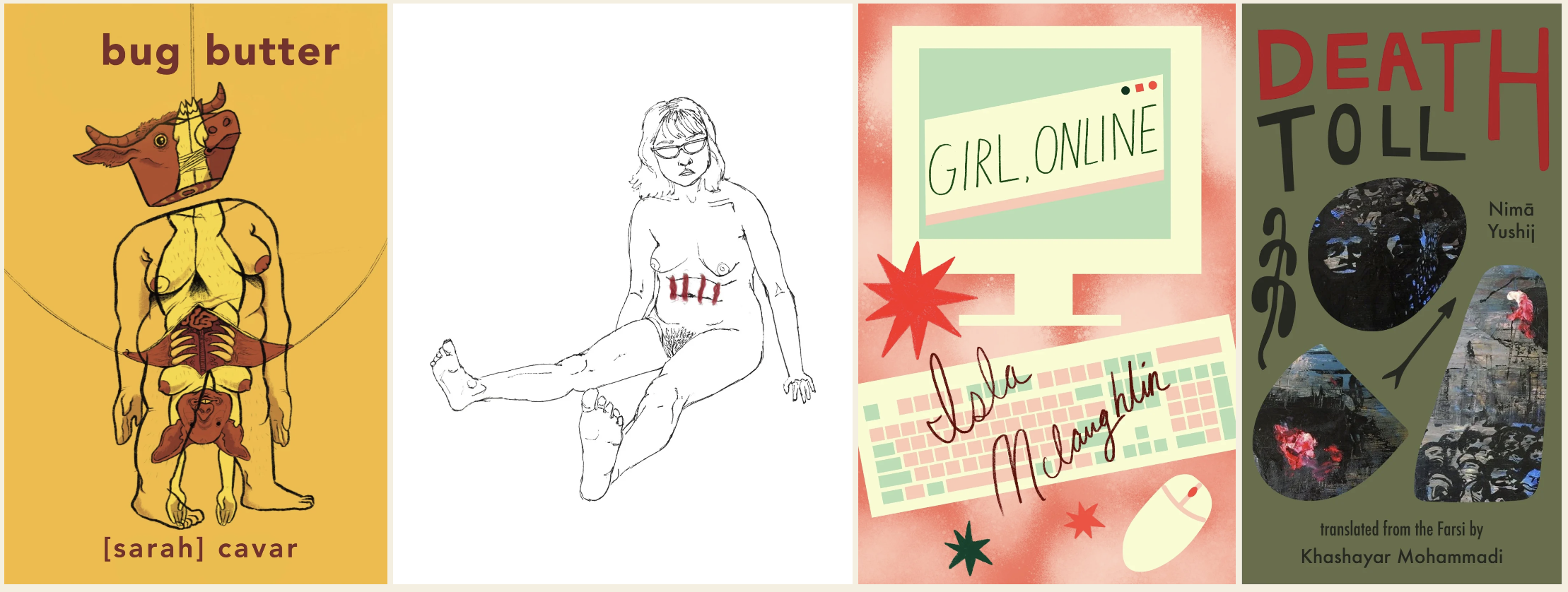 12 AUG 7PM | GAP RIOT PRESS SEASON NINE LAUNCH featuring readers Khashayar “Kess” Mohammadi Death Toll, translation of Nima Youshij, Isla McLaughlin girl, online, and Claren Grosz starting with the roof of my mouth. Also launching Sarah Cavar’s Bug Butter. Plus, limited-edition broadsides for sale featuring work by Jessica Bebenek, Kevin Stebner, Melanie Dennis Unrau, Dona Mayoora, Eric Schmaltz, Rasiqra Revulva, Katie O’Brien, and Jessica Lee McMillan.