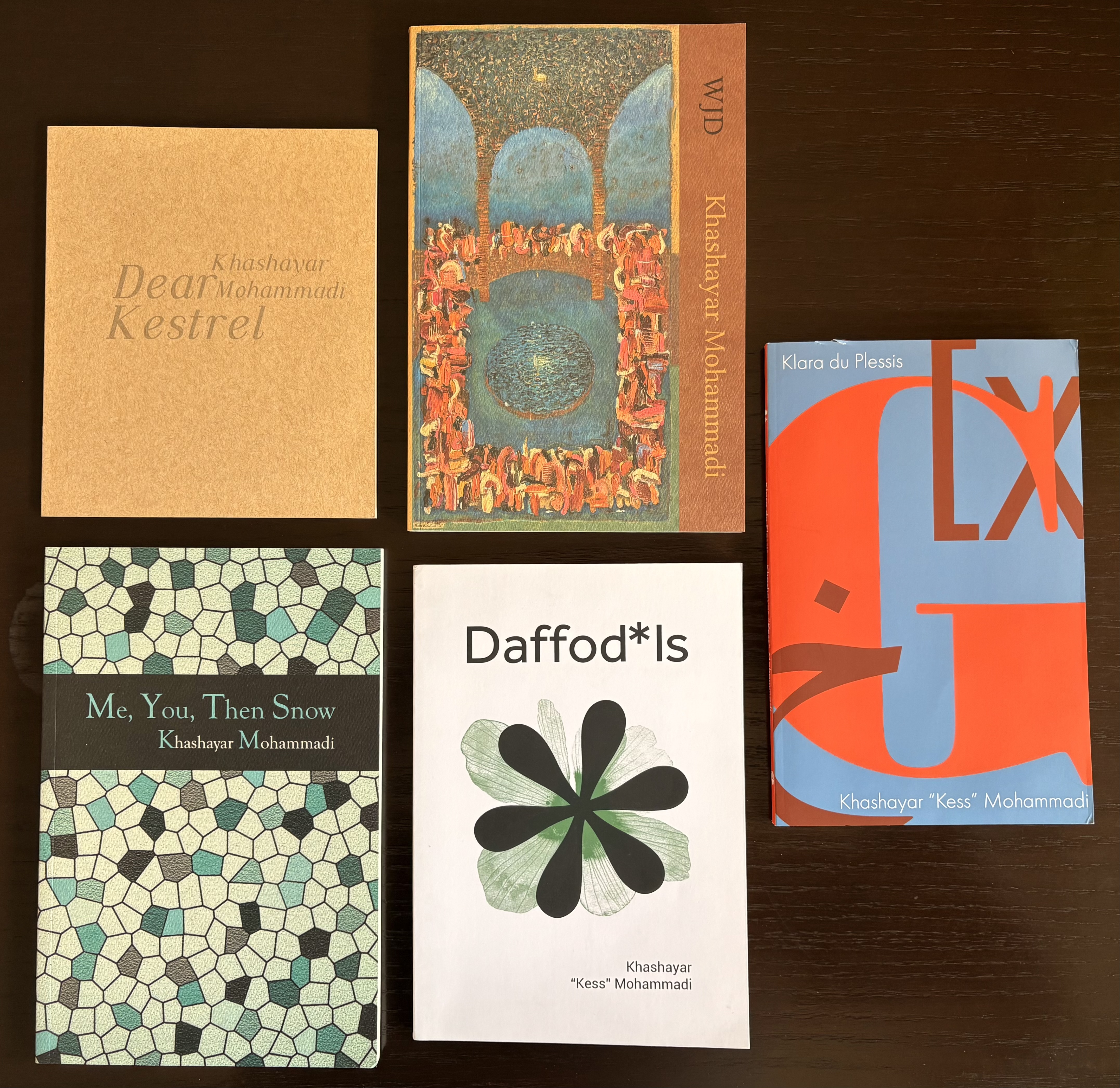 5 by Khashayar “Kess” Mohammadi , including rare out of print KFB chapbook, Dear Kestrel $95 (+$20/shipping in Canada)